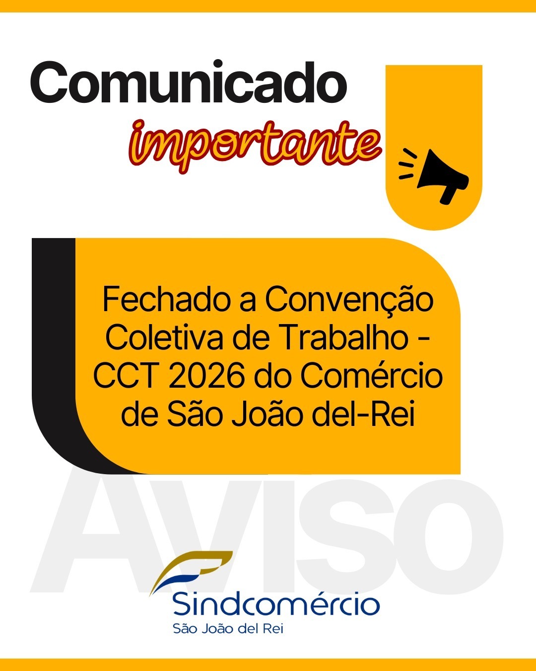 Foi fechado na tarde desta quinta-feira, dia 12/02/2026, a Convenção Coletiva de Trabalho - CCT 2026 para categoria do comércio de São João del-Rei.